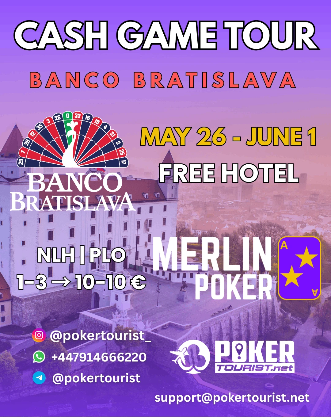 Merlin Poker Cash Game Tour | Bratislava, 26 MAY - 01 JUNE 2026 | NLH 1/3 - 10/25 | PLO 2/2 - 25/50